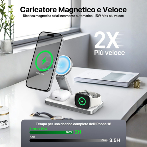 Stazione di Ricarica Wireless Magnetica 3‑in‑1 per Dispositivi Apple