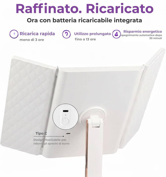 RISPARMIA 50%Specchio cosmetico LED pieghevole in tre parti