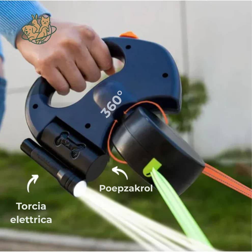 Appena rilasci, il guinzaglio si riavvolge automaticamente grazie al meccanismo integrato.