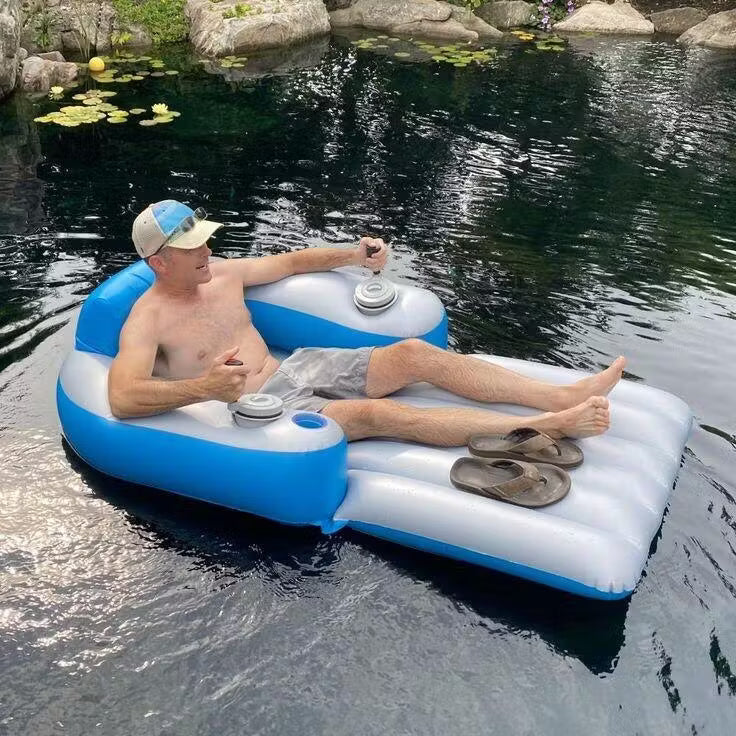 Materiale PVC resistente da 0,35 mm, con capacità di supportare fino a 136 kg. Include uno schienale alto, uno basso e un portabicchieri perfettamente posizionato. Montaggio in pochi minuti!