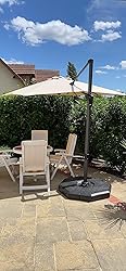 • Ombrellone molto bello e di ottima qualità.Sono davvero soddisfatta.Anche il piede in dotazione è molto solido.Riempito di sabbia, l'ombrellone non rischia di volare via.Tutto era molto ben imballato.