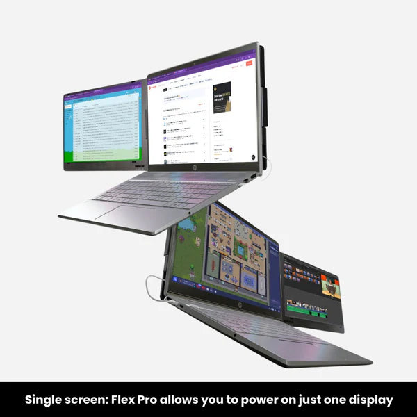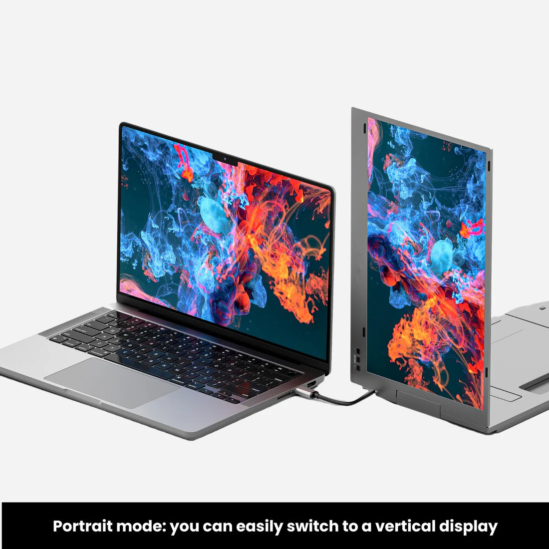 Estendi il tuo spazio di lavoro del 200% con i Doppi Schermi Portatili. Progettato per migliorare i flussi di lavoro personali, ti consente di aumentare la produttività ovunque tu vada.